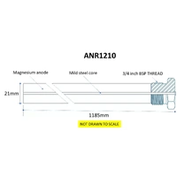 Notes | SPECIFICATIONS Material: Magnesium, Diameter: 21mm Length: 1185/1050mm SOLID ANODE. You will need clear headroom above the tank to be able to install it. If you have limited headroom we have a different listing for a flexible version: ANR1210F Fitting: 3/4 inch BSP Thread. Requires 27mm socket to remove and refit. NOTE: Price is for ONE(1) anode. **TIP: Comes with plumbing tape but you may need additional plumbing tape applied depending on fitment** **2 YEAR WARRANTY covers anode manufacturer, specifically the weld and construction of the steel nut** DIRECT REPLACEMENT FOR RHEEM ANODE PART NUMBER 221914 or 221909, DUX ANODE PART NUMBER HO854, HO855, HO858, HO849 FITMENT GUIDE: IF YOUR UNIT IS NOT LISTED BELOW, CONTACT US AND WE CAN ADVISE IF WE HAVE ANODE TO SUIT • Aquamax Electric: 125L (991125R, 991125C, EM125S), • Aquamax Electric: 250L (991250R, 991250C) (E series tanks require different anode, we have a different listing: ANRO1210) • Aquamax 5 star Gas: 270L (G270V) (requires 2 anodes) • Aquamax solar: 125L (All variants) • Bosch Tronic1000T: 125L, 160L, 250L (All variants) • Dux Electric Forte/Proflo: 125L, 160L, 250L (All variants, PRE 2017) • Dux Gas Prodigy/Proflo: 135L, 145L ((All variants, PRE 2017) • Dux Airoheat: 250L ((All variants, PRE 2017) • Dux Ecosmart Solar: 250L ((All variants, PRE 2017) • Edwards Solar: 270L GTS/GTD series (All variants) • Everhot Electric: 125L (291125), • Everhot Electric: 250L (291250) • Everhot Gas: 135L (218135) (requires 2 anodes) • Everhot Gas: 265L (250265) • Everhot Gas: 265L (252265) (requires 2 anodes) • Everhot Gas: 270L (647270) (requires 2 anodes) • Everhot Solar: 220L (211220) • Quantum Heatpump: 200L, 270L (All variants) • Radiant Electric: 125L, 160L, 250L (All variants) • Rheem Electric: 125L (11125, 121125, 162125, 191125) • Rheem Electric: 250L (111250, 121250, 162250, 191250), NOTE: (411250, 462250, 491250, 492250 Require different anode: ANRO1210) • Rheem Gas: STELLAR 330 (850330, 854330) (Requires 2 anodes) • Rheem Gas: 135L (300135, 311135, 620135, 630135 • Rheem Gas: 135L (811135, 347135) (Requires 2 anodes) • Rheem Gas: 170L (G135VE only) • Rheem Gas: 260L (620260, 622260, 630260,632260) (Requires 2 anodes) • Rheem Gas: 265L (350265, 354265, 850265, 854265) • Rheem Gas: 265L (621265, 631265) (Requires 3 anodes) • Rheem Gas: 275L (621275, 631275) (Requires 3 anodes) • Rheem Heatpump: 275L (550275, 551275) (You will need to cut anodes down to 1153mm) • Rheem Heatpump: 310L (551310) (You will need to cut anodes down to 1153mm) • Rheem Solar: 220L (511220) • Rheem Solar: 260L (631260) • Rheem Solar: 270L (291270, 511270, 590270, 591270, 596270) • Rinnai Electric: 125L, 160L, 250L (All variants) • Rinnai Gas: 135L (All variants) • Rinnai Heatpump: 250L (All variants) • Rinnai Solar: 250L (All variants) • Solahart Heatpump: 275L (275HAV) • Solahart Solar: 270L SLV, MDV & DVB series ONLY (These are split systems). We have a different listing for L and J series tanks on roof. Look for other listing ANS2082 • Thermann Electric: 160L, 250L (All variants, PRE 2017) • Thermann Gas: 135L (All variants, PRE 2017) • Thermann Solar: 160, 250L (All variants, PRE 2017) • Vulcan Electric: 125L, 250L (All variants) • Vulcan Gas: 135L (641135, 648135, 648145) |