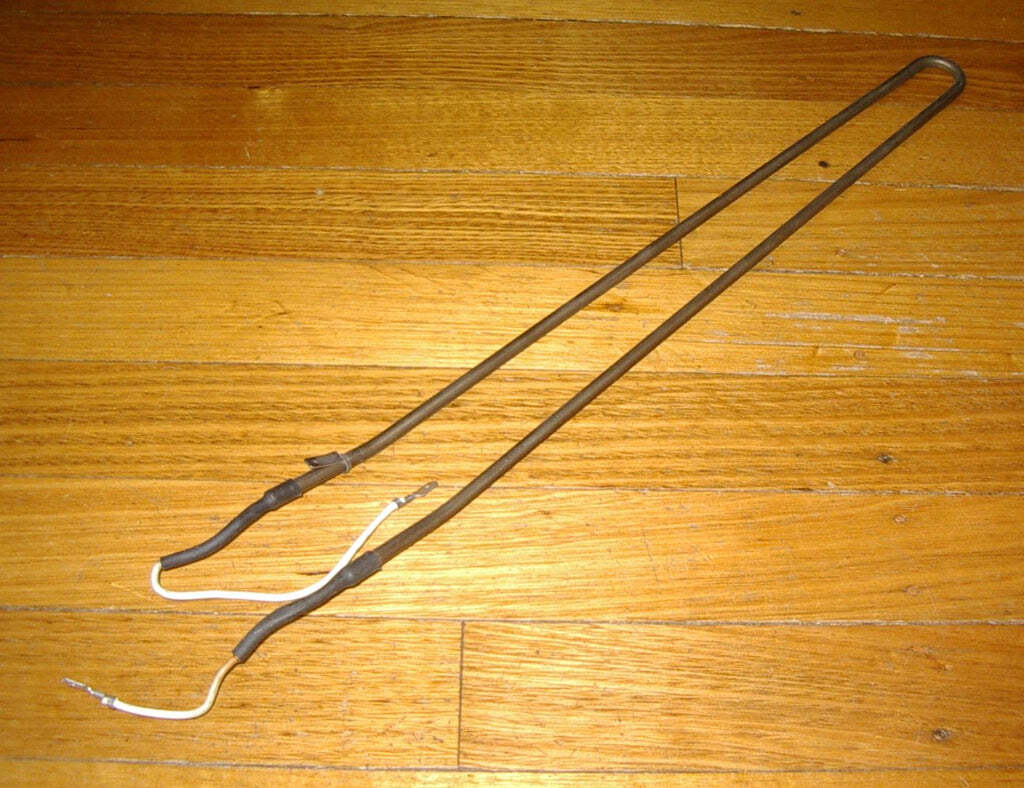 | Notes | Westinghouse, Kelvinator 350 Watt Hairpin Defrost Element.Part No. RF113, 2511K.Hairpin shaped double pass defrost heating element to suit some Westinghouse & Kelvinator frost free refrigerators.350 Watt, 240 Volt AC.440mm wide, 10 & 15cm connecting wires with 6.4mm male spade connectors.Fits some Westinghouse & Kelvinator models |