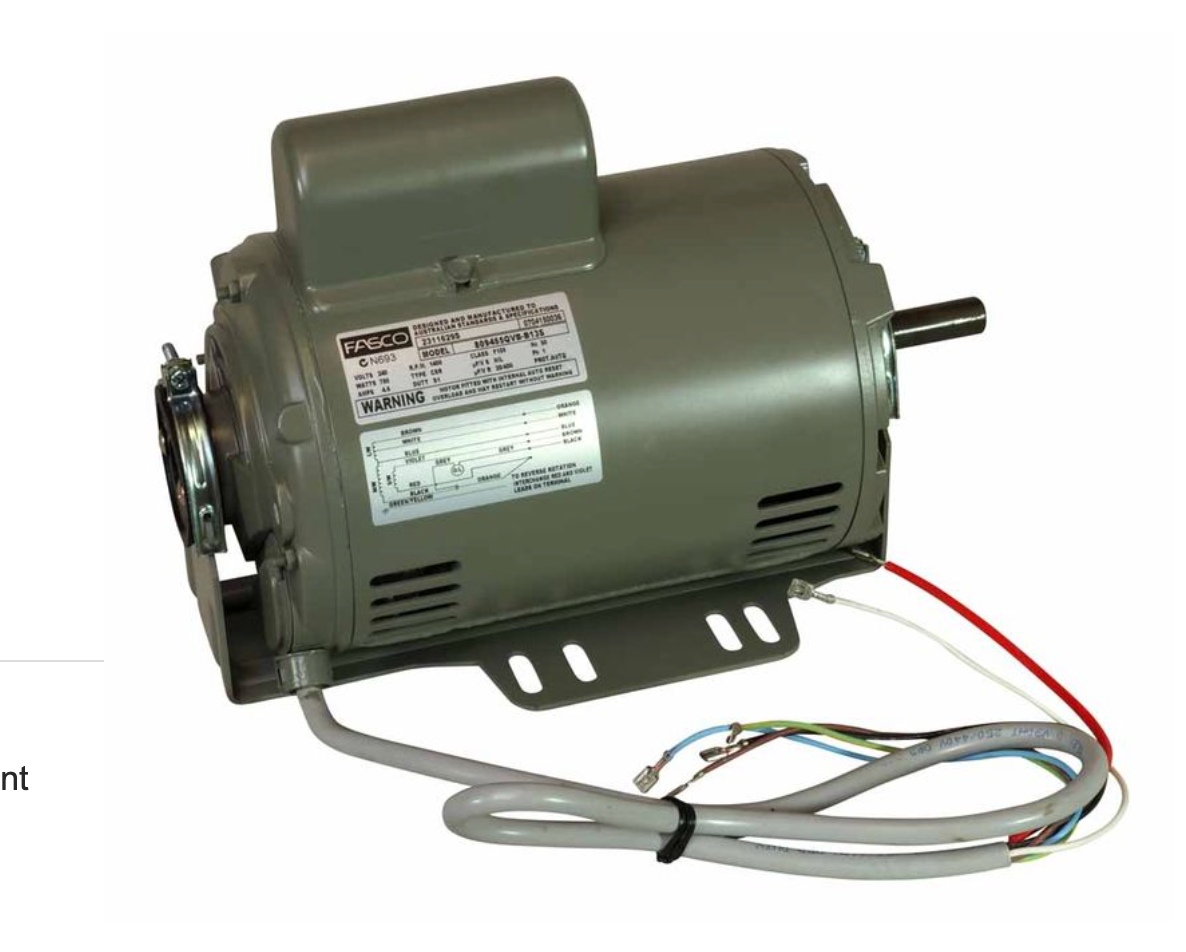 | Notes | Evaporative Cooler Fasco Motor 809455QVB-B13 Available 750 Watts, 4 Pole ( 1400 rpm ) 3 Speed Features 240 Volt, 4.6 Amps, Single Shaft, Clockwise, Vented, Resilient Mount Electric Motor, 12 Months Warranty Models to suit: 29CCT5000-70103 |