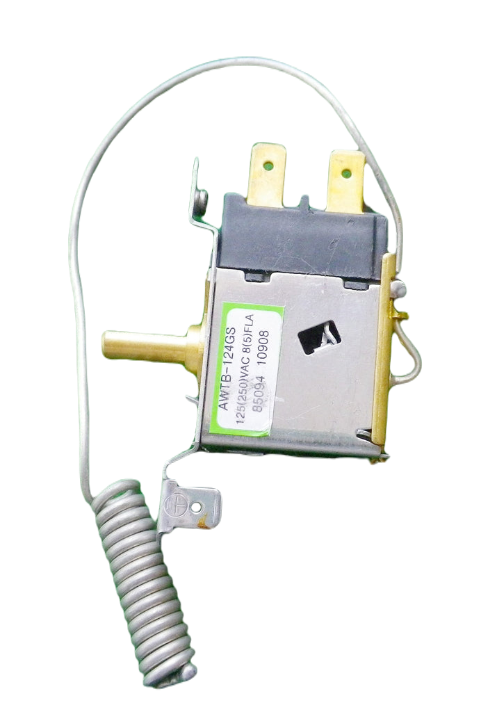 NotesJapanese & Korean Style Refrigerator Thermostat.Part No. RF090C, AWTB-124GS, R090924, 88101-A.Capillary length 0.2metres with coiled end, mounting holes 55mm apart, D-shape 6mm shaft, 6.4mm spade terminals.Suits some Chinese, Japanese & Korean brands of refrigerator where the thermostat is mounted in the fridge section airflow. Fits some LG & Elba models.Cold off  -30degC, Cold on -25degC, Warm off -14degC, Warm on -10degC.Care must be taken not to bend the capillary tube sharply, as this will damage the thermostat