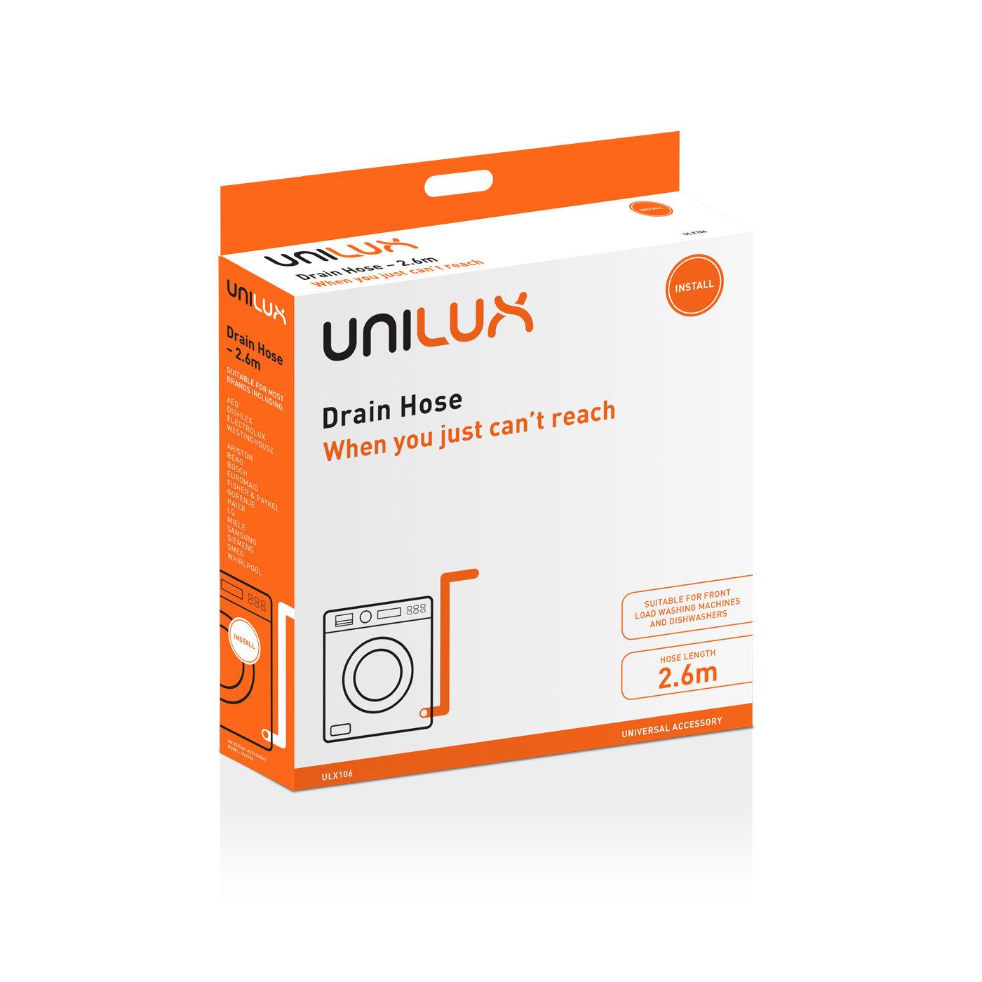 This is a genuine replacement universal drain hose - 2.6m . It is suitable for replacing spare parts with ULX106 part number for DISHLEX Washing Machine.