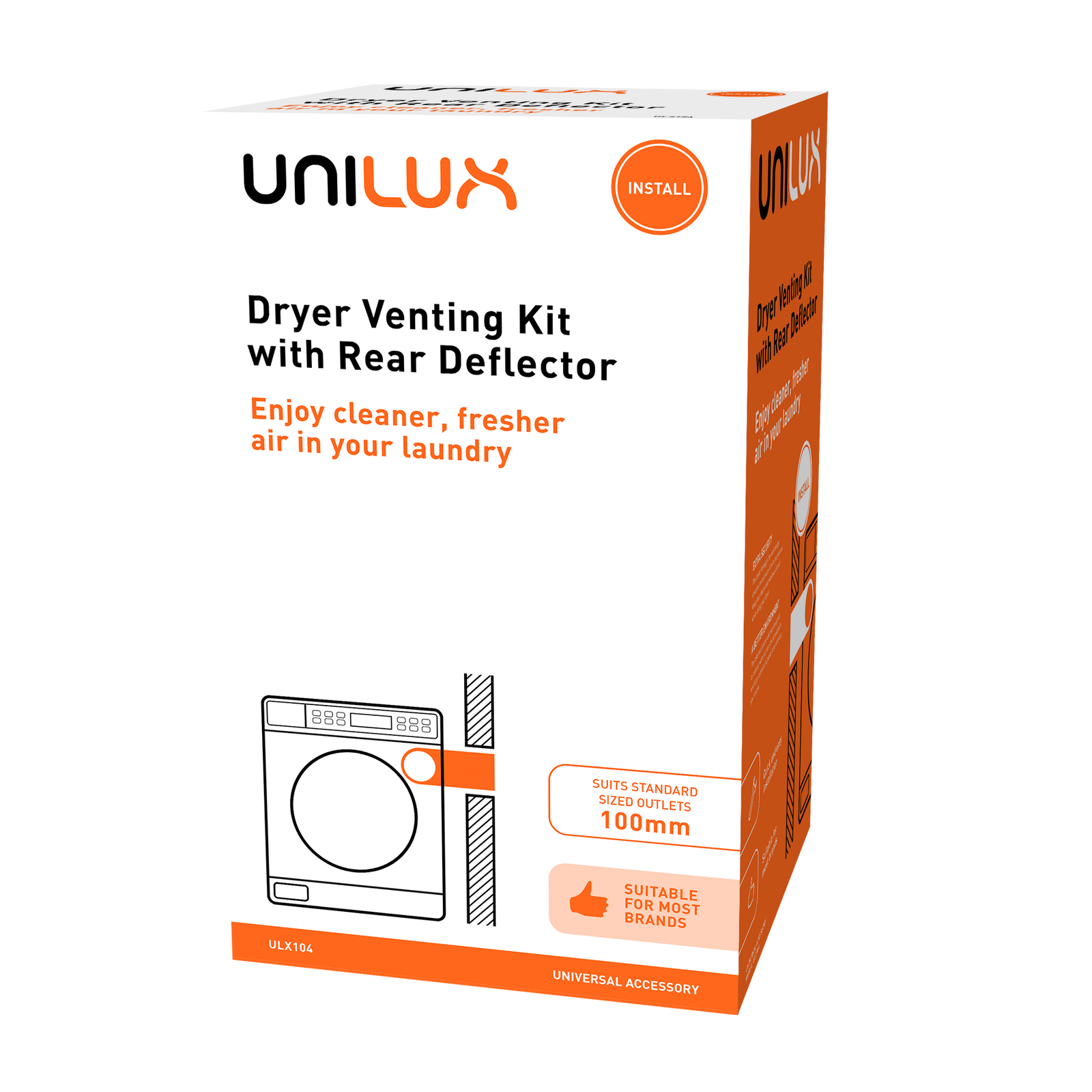 | Notes | Universal Through-the-Wall Dryer Venting Kit with Rear Deflector allows you to externally vent your dryer so you can keep doors and windows closed whilst drying. It is designed to suit most dryers with a standard 100mm air outlet. |