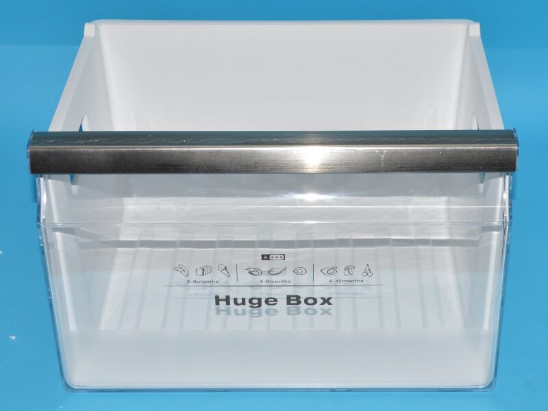 | Notes | Description This is a genuine drawer with a grab handle and silver lining. Has a Huge Box logo and drawn labels for your food item’s shelf life on the front. Place your frozen veggies, meats, or ready-to-cook meals in the generous space of the drawer. You can quickly see inside through the transparent design, great for checking what you have before shopping. Overloading the drawer with food items, slamming, or rough handling can cause wear and tear. If you see these visible signs, change it with this replacement part. This frozen food drawer only fits Hisense fridges and freezers. Manufacturers Part Number: |